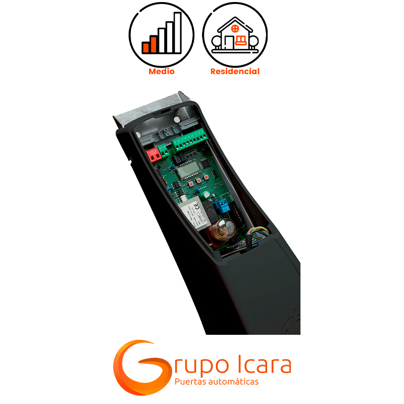 El motor V2 VEGA, una solución efectiva para puertas de garaje basculantes. Diseñado para puertas de hasta 9 m², este actuador electromecánico combina eficiencia energética con una estructura mecánica robusta, asegurando un funcionamiento fiable en una amplia variedad de puertas basculantes.