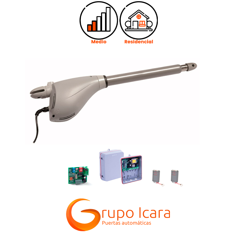 - Motor electromecánico: Adaptado para uso residencial con una alimentación de 230Vac, ideal para puertas de hasta 3 metros de longitud.