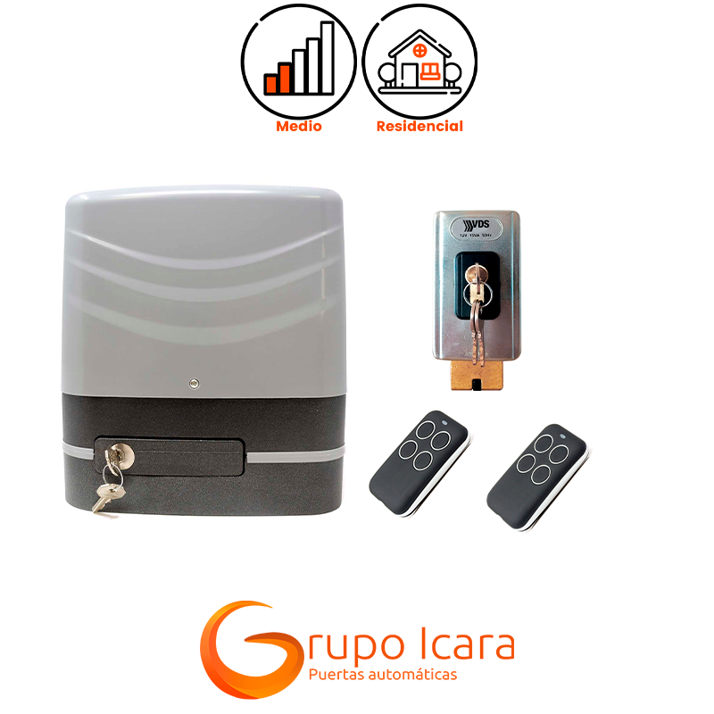 El motorreductor electromecánico es el corazón de este sistema, proporcionando la potencia necesaria para mover puertas de gran tamaño.