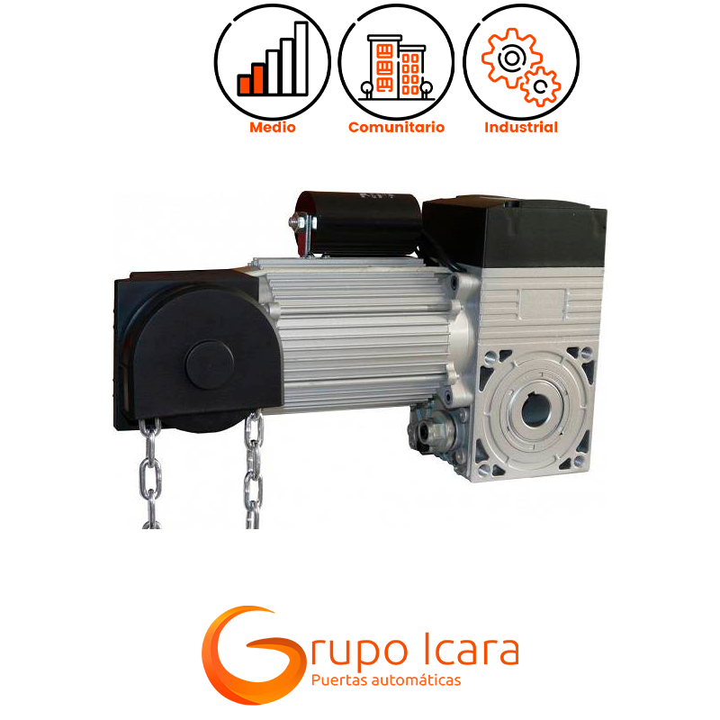 - Ataque directo a eje: Esta característica asegura una transmisión eficiente de la potencia y un control preciso del movimiento de la puerta.